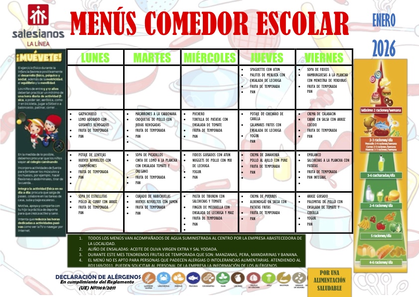 - Aportar una dieta sana, equilibrada y de calidad que contribuirá al correcto desarrollo y la buena salud del alumnado.