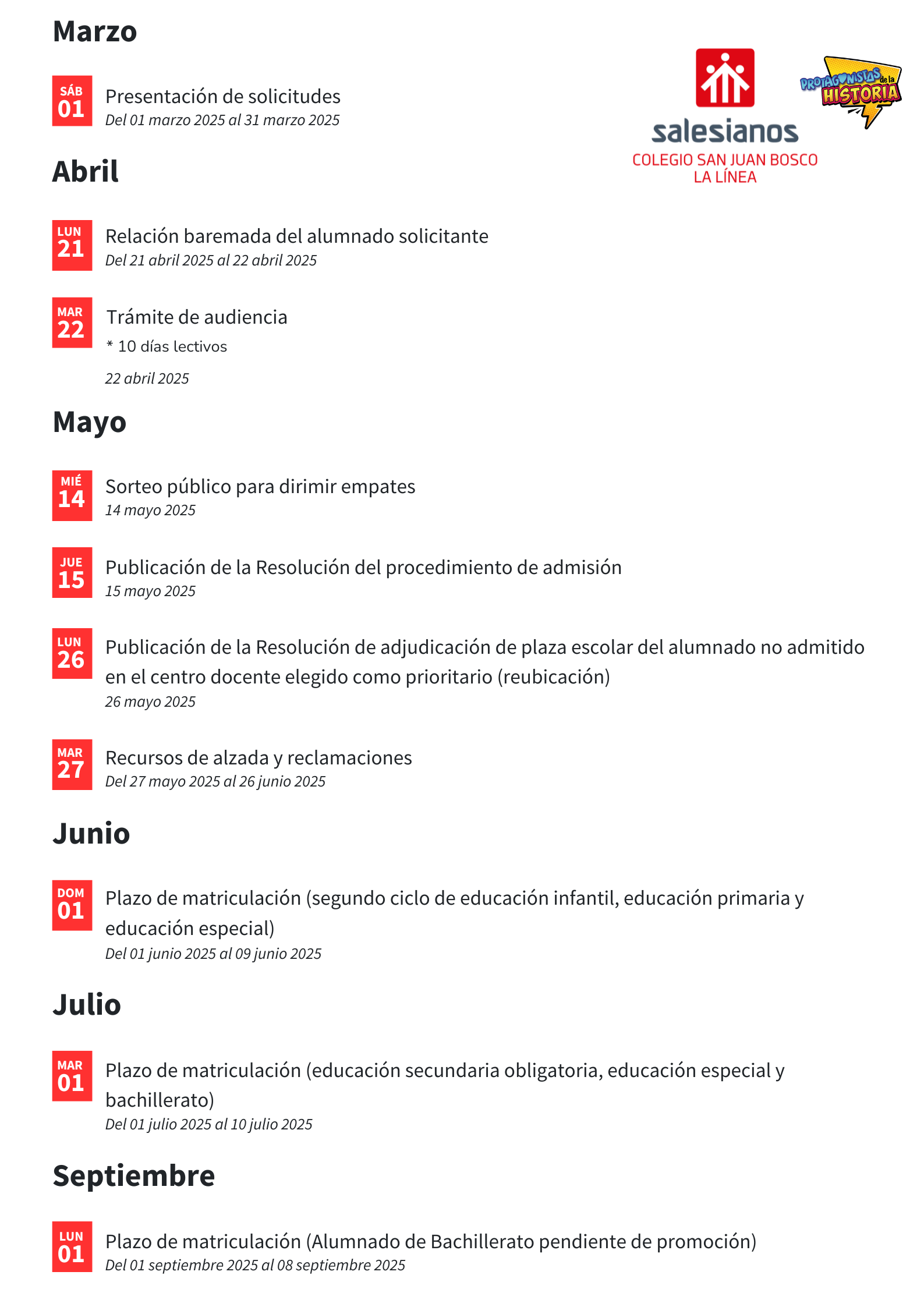 Toda la información relativa a la escolarización de su hijo en Salesianos La Línea